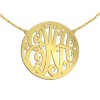 This 24K gold plated sterling silver monogram pendant measures approximately 1 1/2" in diameter with circle border and comes with approximately 1.3mm thick rope chain. Each monogram pendant is custom-made for you with your initials in a stunning block monogram style. Item may slightly vary in overall appearances than the picture shown. Each piece is custom made and is completely unique.